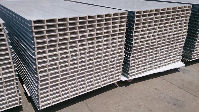 硫氧鎂夾芯板充分發揮了硫氧鎂復合材料的獨特性能,在防火,防潮,防脫膠,高強度,保溫,隔熱,吸音等方面有著顯著地優點及功效。 生產工...